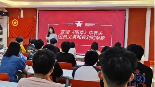 团委副书记(兼)杨静为大家解读了《团章》中关于团员义务和权利的相关内容。通过这一环节,新团员们对团员的身份和责任有了更深入的认识。作为团员,既有享受团组织的权益,也有为团组织的发展和同学们的利益而努力的责任。在未来的学习和工作中,新团员们将更加自觉地遵循《团章》的规定,积极参与团组织的活动,为实现团组织的目标而努力奋斗。